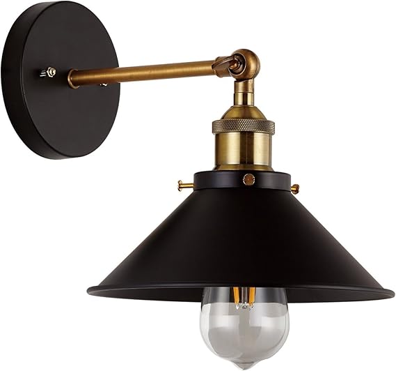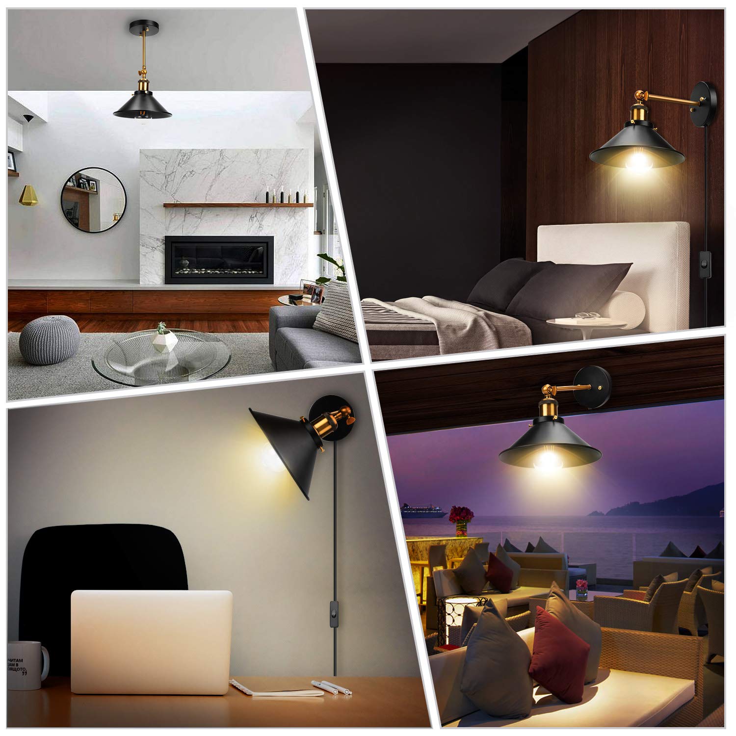 Adjustable retro black wall lamp,plug in wall sconces lamp, swing arm wall lamp with on/off switch wall mounted wall sconce lamp for bedroom living room loft bar cafe,pack of 2.